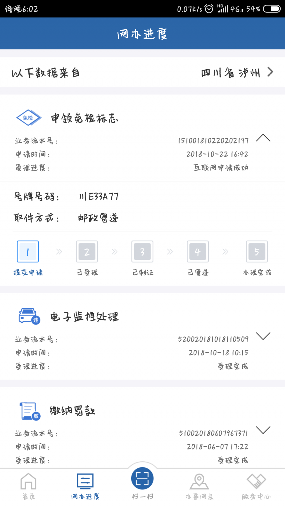 14:38:53 泸州市公安局交通管理支队 已受理 -