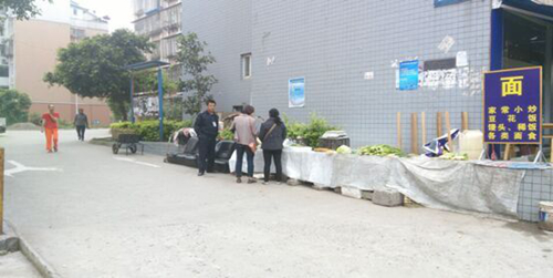 茜草江东新城小区B区出口处,每天有商贩在街边摆摊卖菜,卖肉,开设麻将摊位,严重影响正常生活及居民安全,严重扰民?