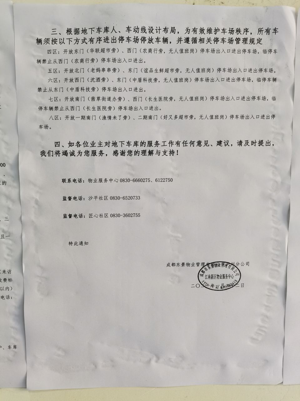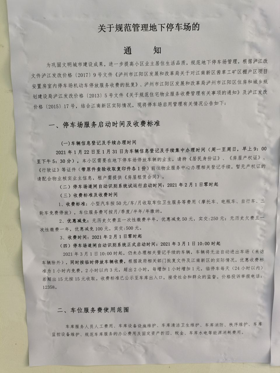 本人为江南新区8区业主,2021年1月22日乘坐电梯看到成都东景物业管理有限公司(以下简称“东景物业”)泸州分公司公示《关于规范管理地下停车场的通知》(以下简称《通知》),现针对东景物业公示的《通知》提出如下几个不合理的地方: