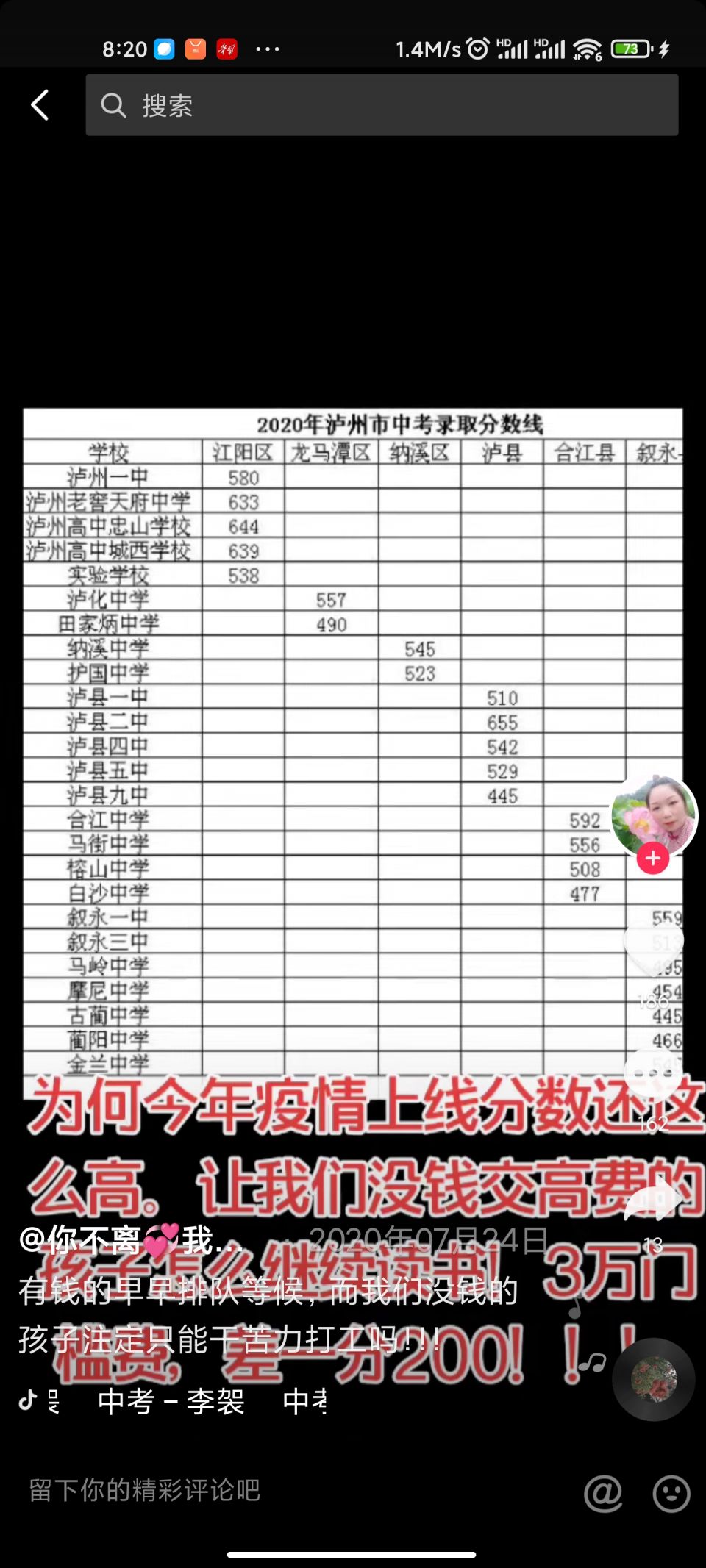 我是古蔺一所镇上的初中老师,去年古蔺新增一所金兰高中,现在古蔺三所高中学校竞争越来越大,而三所学校的录取分数线都相差不大,学生填志愿时真的好难,而今年我校因为志愿填错而上线的落榜生接近50人,农村的家长不像城里家里那样支持孩子读普高,面临高额的择校费,多数家长选择读职高或者不读了。其他区县的高中录取分数线都有较大的差距,唯独古蔺出现这种局面,请问市教体局能不能想办法解决这个问题?
