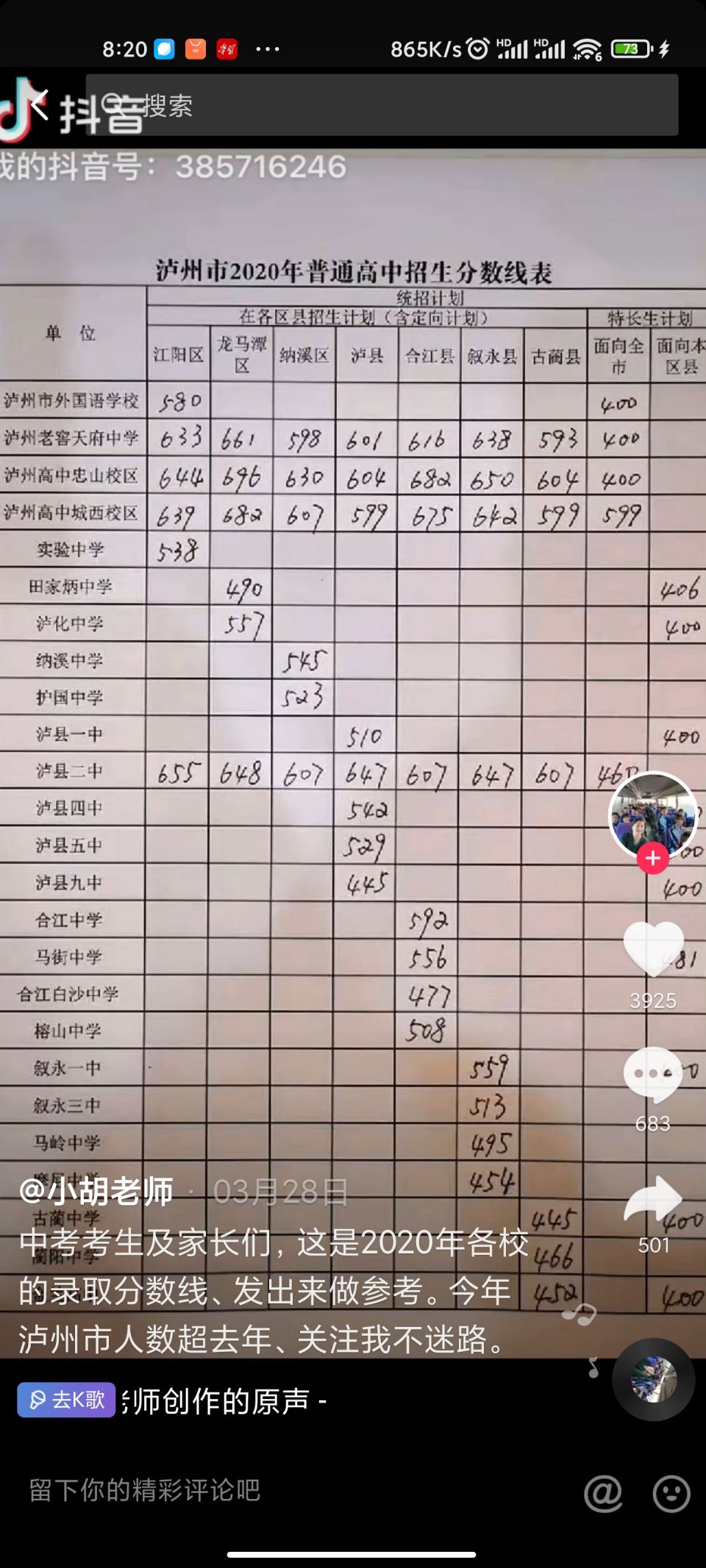 关于古蔺三所高中录取分数线的问题