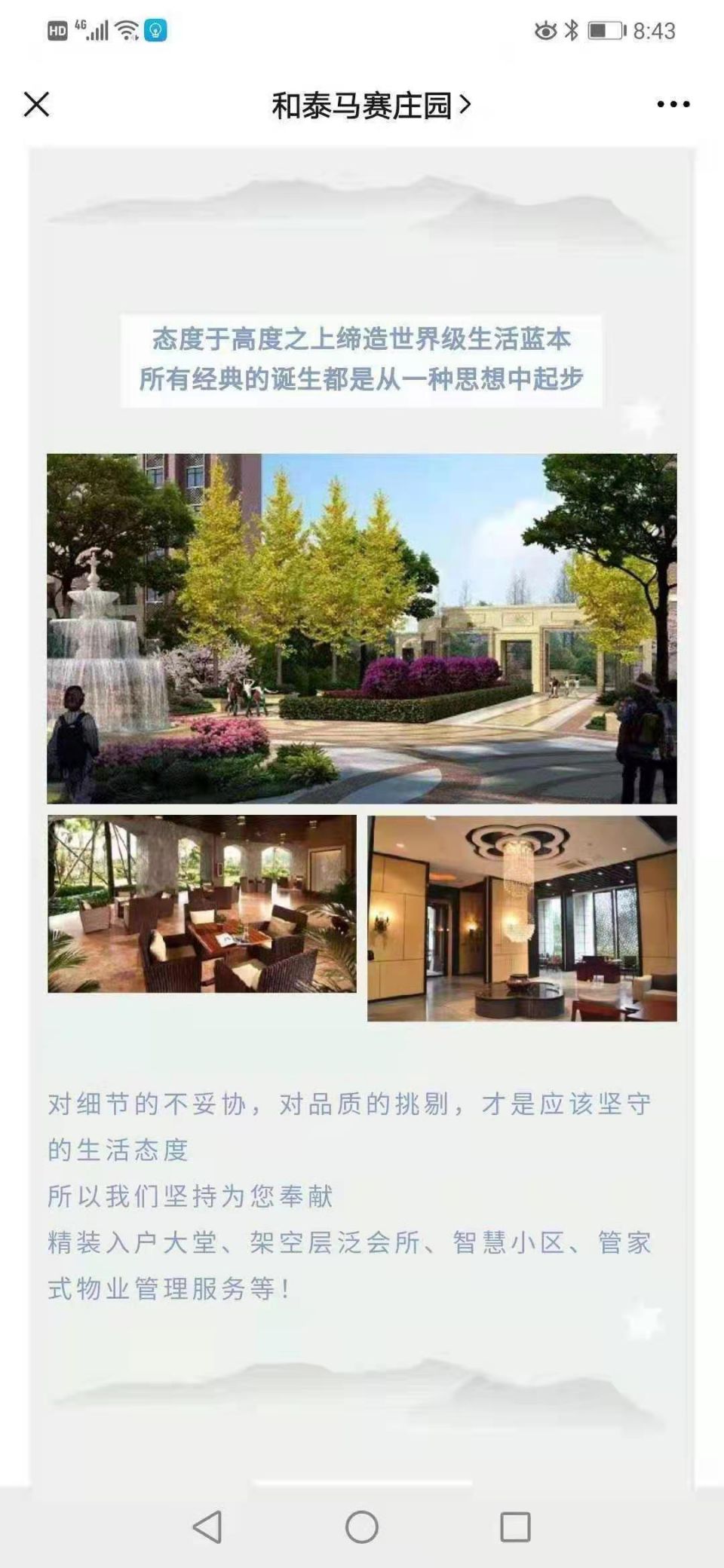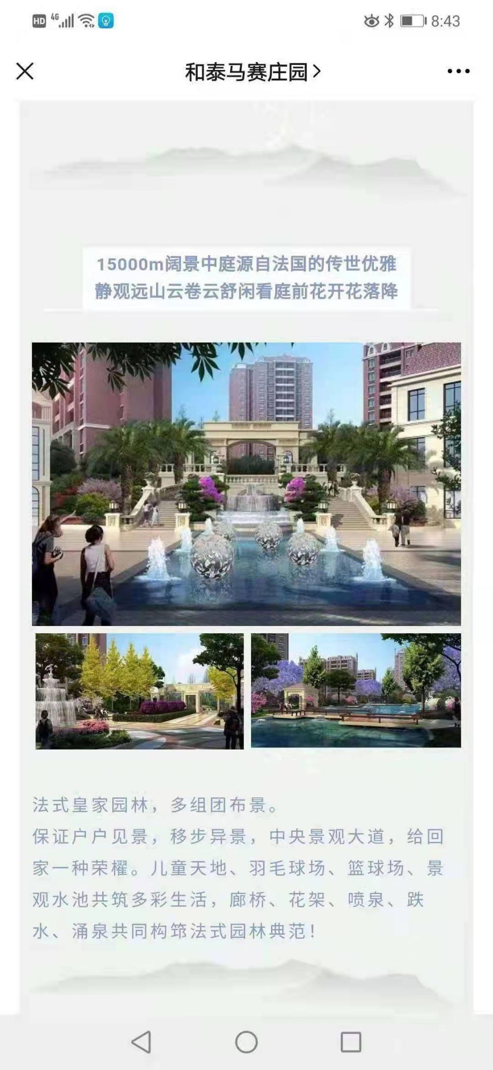 市领导,您好! 我是马赛庄园500多户业主中的一员,谨代表这500多户受害者向您陈诉冤情,希望您能为我们主持公道,严惩无良开发商泸州和泰投资有限公司。我们500多户大多是纳溪周边的农民,打了二三十年工,辛辛苦苦才凑够了首付于2019年以每平方6000左右的高价购买了马赛庄园的期房,当初开发商宣传的是坐拥15000平法式皇家园林,豪华酒店式入户大堂的别墅级洋房。当临近交房的时候,我们惊呆了,我们的皇家园林变成了荒草地,满小区都是为了通过消防验收而把原有的绿化区域改成硬化地面,撒了点草籽充当绿化面积,以上种种问题表明开发商这是实实在在的虚假宣传。