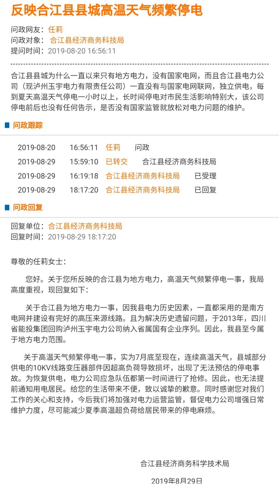 - 回复单位:合江县经济商务科技局