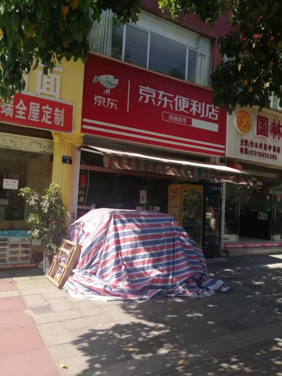 经现场核实,反映的情况属实。玉蟾大道5号京东便利店的货物较多,暂时堆放在人行道上,执法人员向经营者宣传了《泸州市市容和环境卫生管理条例》等法律法规规定,经营者随即将货物搬进店内,现占用城市道路行为已经整改完毕。