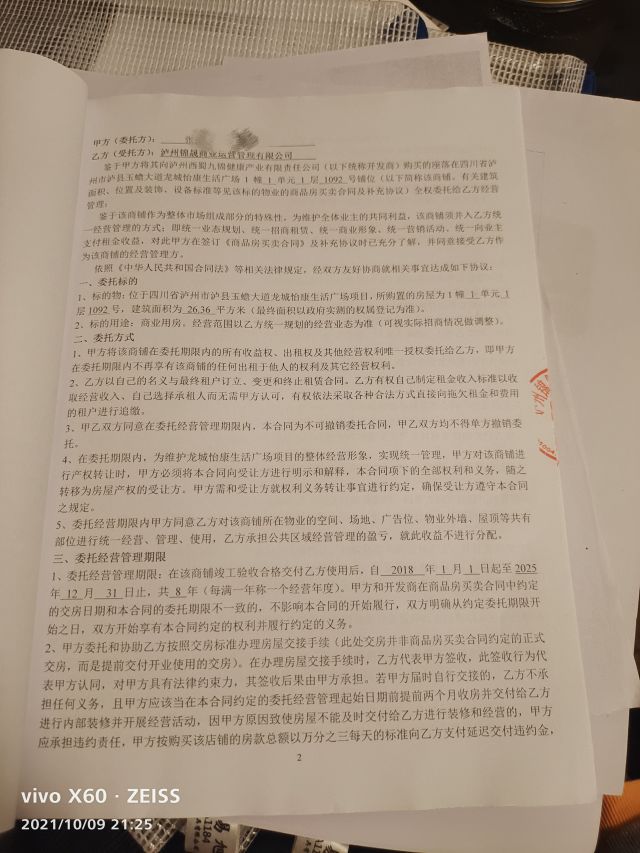 您好!您通过泸州市网络问政平台反映“龙城怡康生活广场再次不履行合同”的问题已收悉,现回复如下: