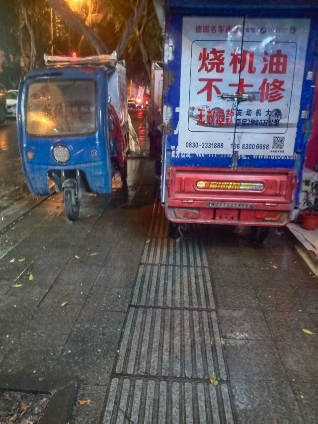 我是对面的居民,家中有老人晚上回家路过该地,不小心被三轮车充电的线绊倒,还好无大碍,如有谁下次不小心可能就不这么幸运了!而且该路段设有盲道三轮车全部档住去路!!希望得到解决!