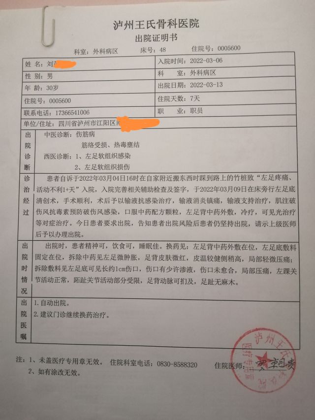 泸州王氏骨科医院做清创手术(未清除伤口内异物)是否存在医疗责任
