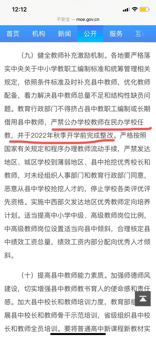 教育部明确规定,严禁公办教师在民办任教,希望合江天立学校公办教师尽快回原学校,不能拿着公办的编制为民办服务。