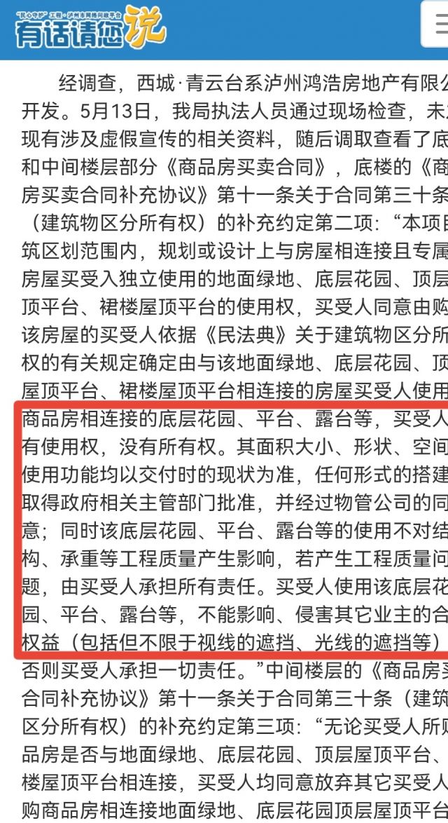 青云台16号楼1单元一楼私自将属于小区公共绿化区域用钢板打围圈占,挖土,破坏小区开发商交付房屋时的绿化。 依据市场监督管理局此前问政回复的关于购房合同表述,公共绿化区域不得破坏交房时的形状及不得影响小区其他业主视线等。 请贵局本着公开公正原则核查,恳请文字回复调查过程及处理结果