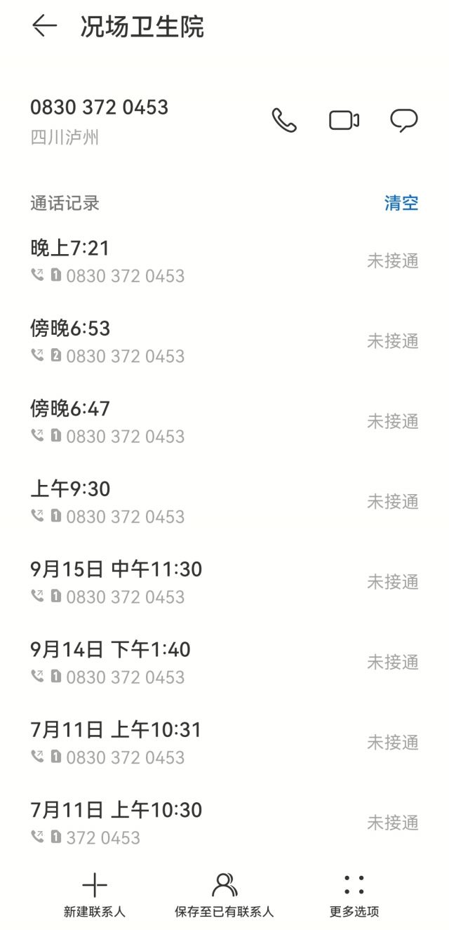 无论如何都打不通况场卫生院的电话,找到一个其中部门的电话,还给我秒挂了,我之前也是好不容易打通的这个电话,这次给我秒挂了三次,啥子情况。