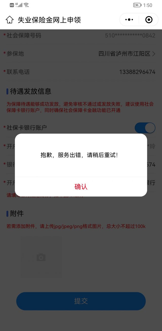 交了保险,现在领取失业金失败,失败原因没有说,直接申请不了?需要一个答复。等重新提交系统提交不了。