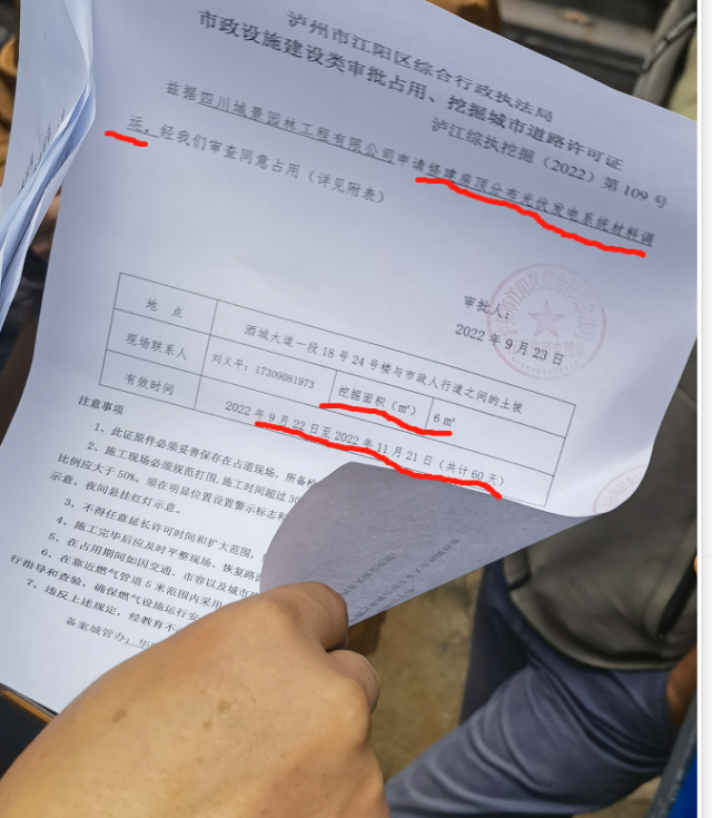 位置:水晶城小区罗马假日KTV(原售房部) 事由:人行横道内侧绿化区内大树被挖 1. 请有关部门确定这片绿化是否为小区红线范围内?若为小区红线内,作为公共绿地,未经业主同意,破坏绿化有关部门及时制止;若为市政绿化,手续是否齐全,树挖走后是否恢复? 2.现场施工人员拿出手续显示批准事由是材料调运,开挖面积仅为6平米,实际该楼门口有宽的阶梯,开挖绿地是否合理?且动的面积远超6平米 3.9月21号就已经打围,23号才审批通过,难道在主干道边可以先打围后审批? 4.业主就此询问物业,得到的回复是此楼已出售,让业主自行询问政府 有热心业主拍的现场视频因格式不对,无法上传,工作人员可以现场核实 作为水晶城业主和普通市民,不管这片绿地的树是小区绿化还是市政绿化,都希望居住和生活的城市环境优美,绿树成荫,所以恳请有关部门及时回复!