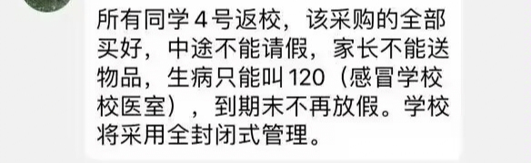 四号开学 一直到期末 不准家长送东西 龙凤不是还有中风险吗 叙永三中真的还要复学吗
