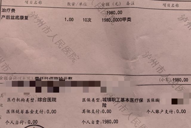 经与泸州市人民医院核实,该院的产后盆底康复诊疗项目经市发改委批准和市卫健委备案登记为特需项目,特需项目为自费项目。按照《泸州市职工基本医疗保险门诊共济保障机制实施细则》规定,个人账户主要用于支付参保人员在定点医疗机构和定点零售药店发生的政策范围内的自付费用,故您此次在市人医因产后盆底康复就诊费用不能纳入报销。