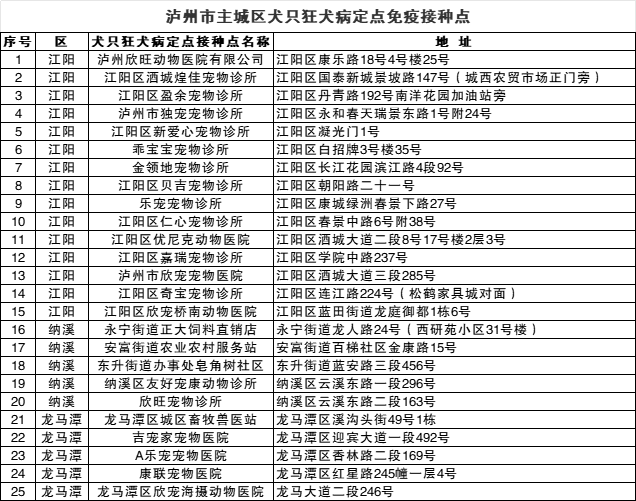泸州市范围内暂无公立宠物诊疗机构,您的宠物生病可以前往市内私立宠物医院或者诊所就诊。但主城区内设置有25个犬只定点免疫场所(具体名单见附件),注射国家狂犬病单苗免费,注射进口狂犬病疫苗或多联苗的自行承担费用。