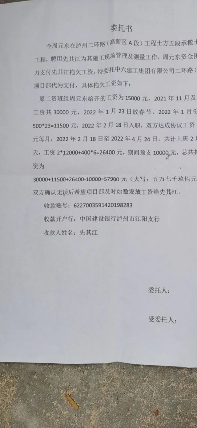 本人于2021年11月至2022年4月底在泸州市江阳区二环路(高新区A段)工程土石方五段上班从事测量及施工现场管理工作,离职时与高新区A段项目部约定代付劳动报酬总共57900元,结果项目部实际发放工资为55600,欠付2240元,以后我多次向项目部讨要无果,特咨询相关部门维权