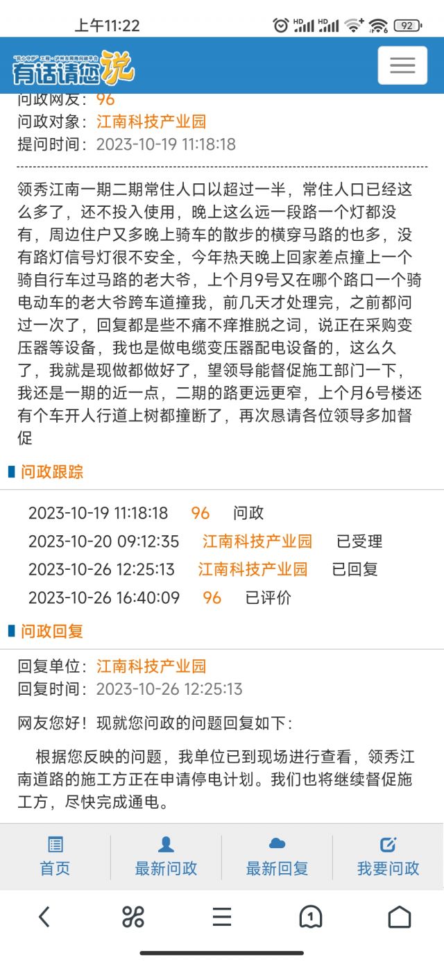 国网纳溪供电公司工作人员就具体情况向问政人作了沟通说明,如问政人今后遇有用电方面问题,请致电纳溪供电公司抢修服务电话:0830-4251346,我们将竭诚为您服务。