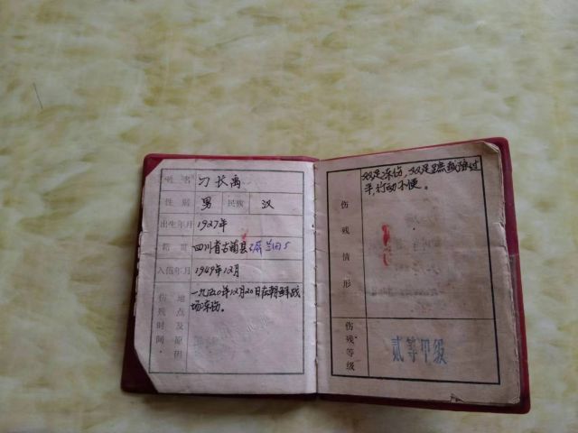 家里只有一本残疾证,上面只写了出生年月,籍贯,入伍时间,伤残等级。