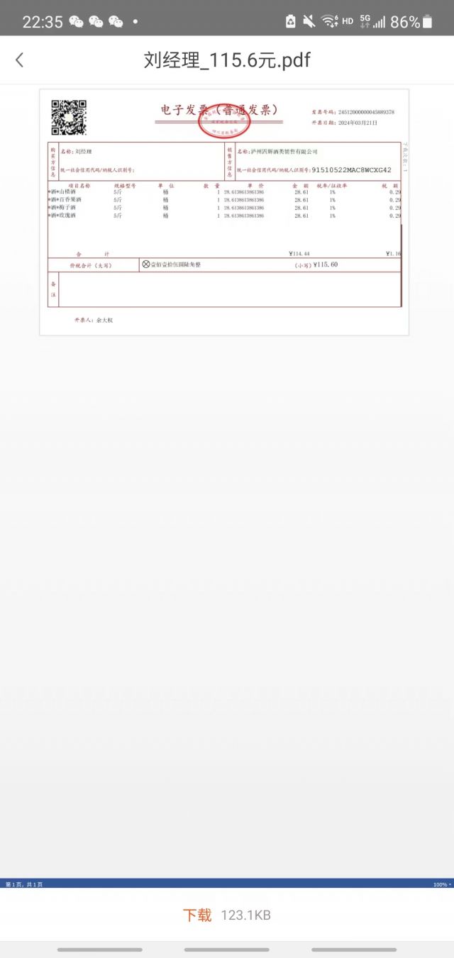 经核实,问政网友张先生2024年3月17日在泸州市四辉酒业有限公司网店购买4款果酒,金额155.6元,平台红包抵扣后实付150.6元,因四辉酒业经办人员操作错误,在2024年3月21日误开具金额113.44元、税额1.16元的发票交于张先生,随后经办人员发现错误立即于当天(2024年3月21日17:27分)重新开具金额为154.04元、税额1.56元,价税合计155.6元的电子发票交于张先生,张先生也已查收,开票金额与实际销售一致,暂未发现四辉酒业不如实开票或虚假开票的情况。