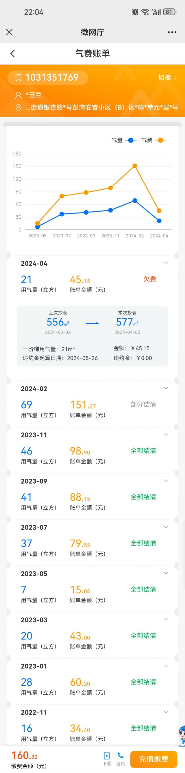 1月25日起无人居住(燃气阀门也是关了的),但截止目前查询到燃气欠费160.32元