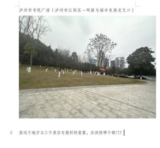 想请问,在市民广场,就是在江阳区一环路与瑞丰东路交叉口这个位置,如果想安装三个报栏的装置,应该找哪个部门?流程是怎么样的?