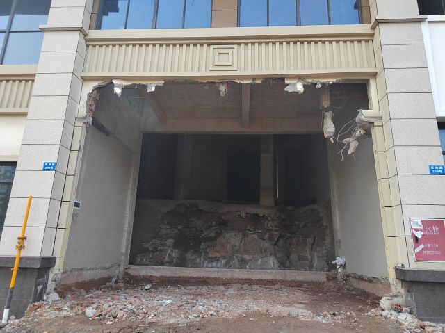 玖玺府5栋1单元底层门牌227号商铺在4月上旬私自将其店铺后墙后侧的5栋1单元高层建筑基础护坡进行破碎开挖,导致房屋基础勘岩岩层部分缺失,部分基础裸露,基础岩层受到扰动破坏,33层高层存在较大安全隐患。业主及时向住建、社区及城管部门反应此情况,要求商铺提供第三方权威机构对已破坏部分房屋基础进行质量安全鉴定之鉴定报告,再根据鉴定结果经专业部门出具有效处理方案,并依照方案进行处理,但至今商铺未对已破坏基础进行处理。