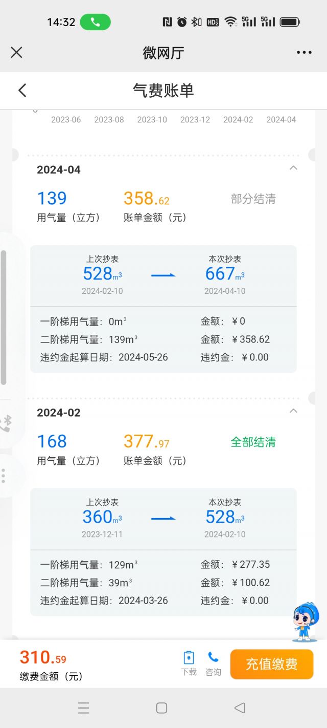 经调查,通过系统查询发现您家的气费是正常抄表产生的费用,由于冬季气温较低,且本周期到了年度阶梯结算时间,导致用气量和气费有一定增加,下一周期将重新计算年度阶梯,建议用户再观察一段时间。