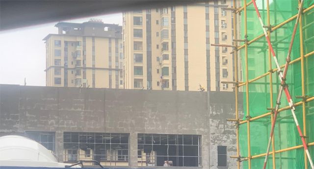 现场两位施工人员在20米高的楼顶在无任何安全措施的情况下,脚踩40cm宽的边缘行走将近20分钟(之后未知),善意提醒现场管理人员(疑似)后,该管理人员电话联系,并未直接进行制止,5分钟后和旁边人员“谈笑风生”,5分钟后蓝色安全帽人员才进行喊话制止。