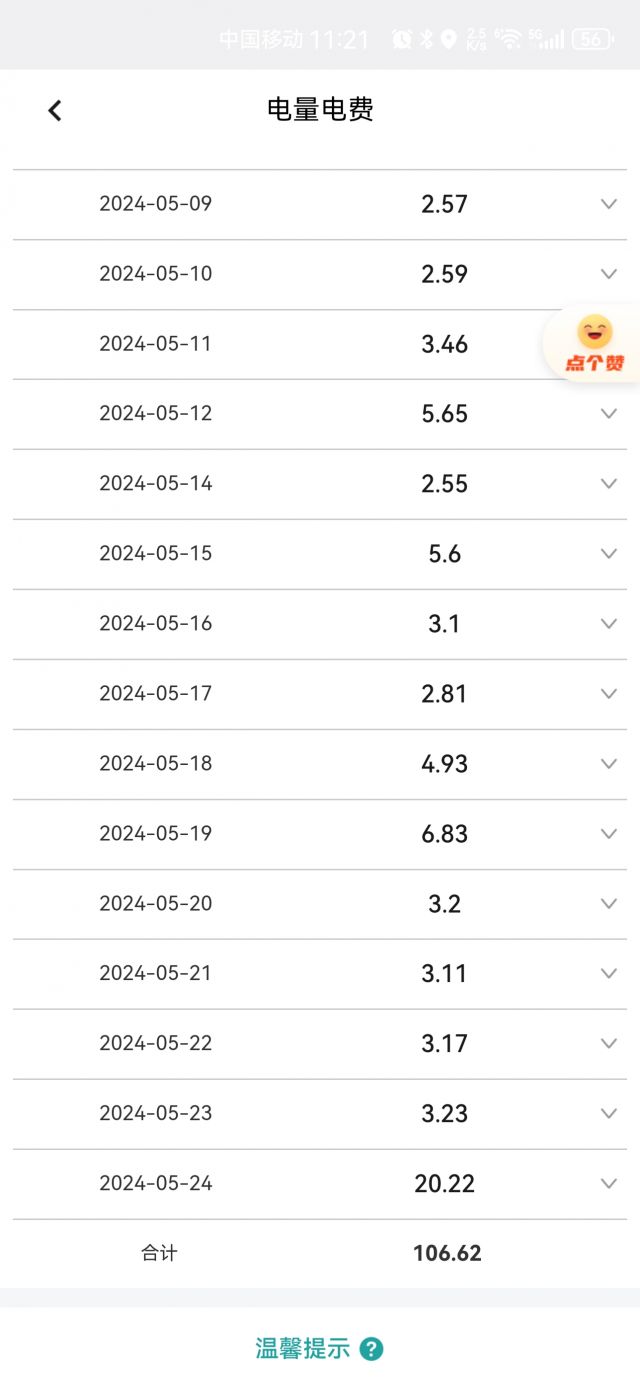 2024年5月电力扣费异常,扣费金额大于实际用电计费金额。按照电费计价标准,用电180度以下白天0.5224元/度电,夜晚0.25元/度电,30元折合用电量应大于60度,家庭正常使用电器一天扣费30元,是否异常,请查实。