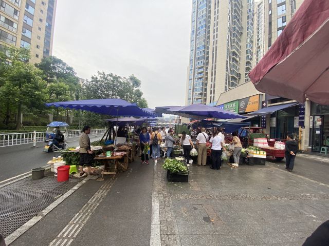 经调查了解,新城西多栋楼盘已交付使用并有居民装修入住,因新城西周边暂无菜市场,新城西居民急需一个菜市场来保障周边居民正常生活,故有部分附近的农户自发在酒城中心一侧形成了一个集中售卖菜市场的摊点。鉴于有流动商贩占道经营问题,华阳执法队已安排工作人员对流动商贩占道经营行为进行劝阻,并告知该区域的商贩规范经营。后续,我队将根据整体规划要求统一进行规范。