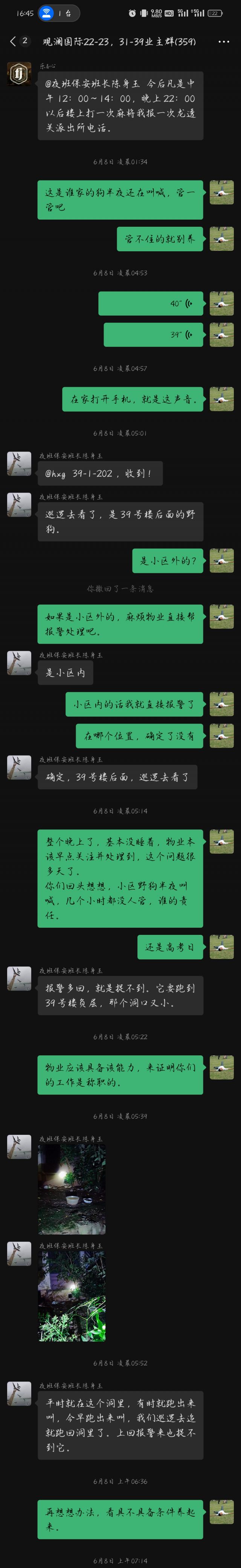 观澜国际39号楼架空层有野狗一只,半夜嚎叫,居民难以入睡,持续多日,野狗不时出入小区,有伤人危险。奈何物业不力量薄弱,难以及时处置,请求支援。