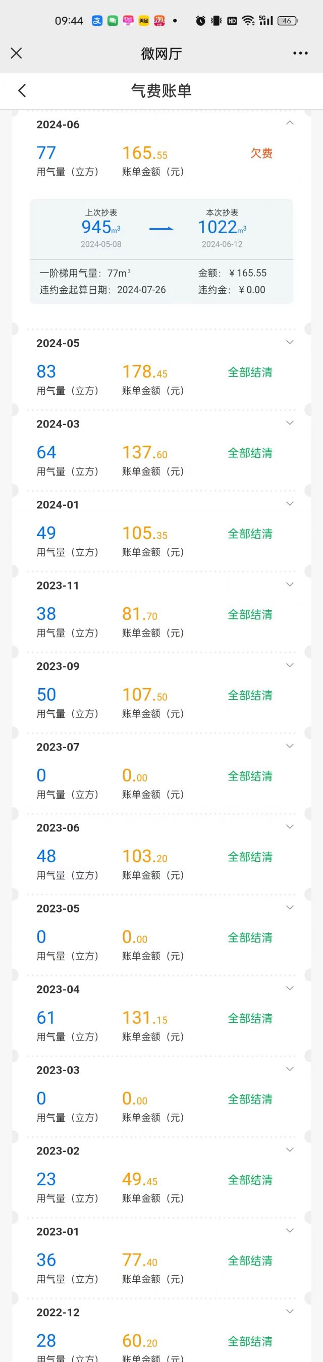 华润兴泸燃气公司存在乱收费情况,以前平均两个月一百多费用,从5.8-6.12一个月不到165.5元的费用
