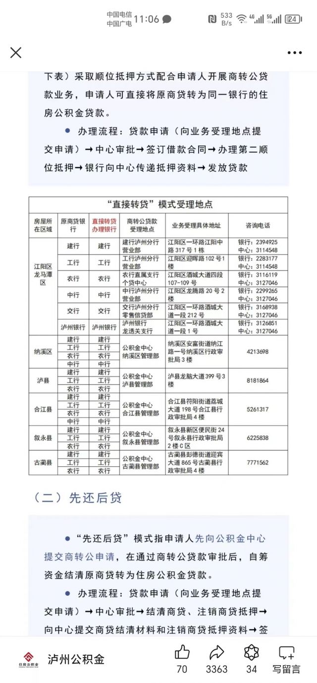 我在泸州公积金微信公众号上看到7月1日起可以办理商转公贷款,但办事指南上泸县直接转贷模式受理地点只有建行,工行,农行,意思是只有这三个银行的商贷可以办理商转公贷款吗?其他几个银行不行吗?比如我的是四川农信的商贷,可不可以办理?