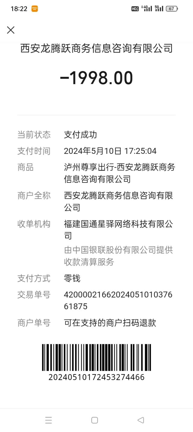 在2024年5月10日,我家里人在云龙机场办理值机,有穿着工作服的人来推销办卡,说是免费办卡,但是办完卡却扣了1998元,当场我家里人就说不要了,但是那个工作人员说喊关注云龙机场的微信公众号会发消息,而且还说不会退全款只能退1000块钱,后来也关注了公众号,但是并没有看到有什么关于这个的消息,打电话过去问也是让关注公众号看消息解决,希望泸州云龙机场可以改善这种情况,因为我看到已经有很多这种事情了,也希望可以尽快处理,并且我要求全额退款。