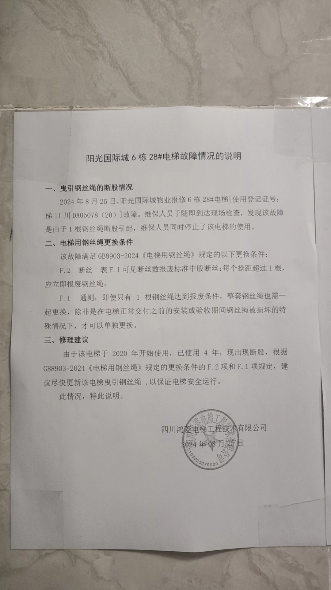 您好!您通过泸州市网络问政平台反映的“阳光国际城电梯问题”已收悉,现回复如下: