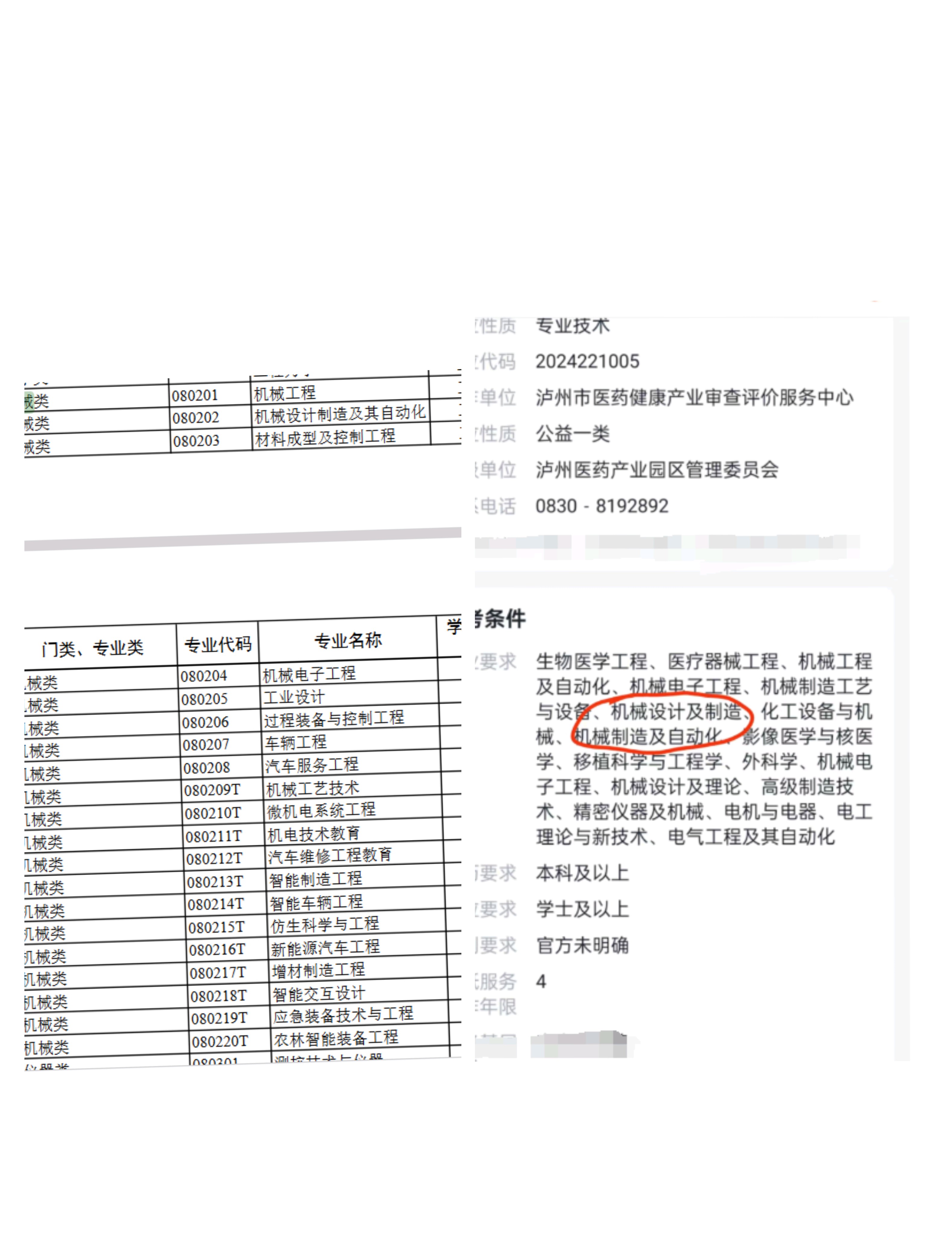 我看了教育部本科专业目录里面,确实是没有找到公告要求里面那几个机械相关的专业。另外,公告里面,写的两个所谓的专业,一个叫“机械设计及制造”另一个叫“机械制造及自动化”。然后,我的所学专业叫“机械设计制造及其自动化”,我报名这个岗位,结果说我专业不符合。于是,我打电话问了,又说我这个专业跟那两个专业是不同的专业,就是不能报考!