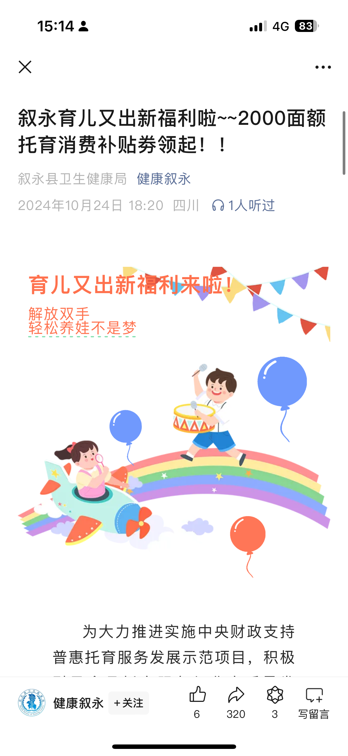 最近看到叙永还有江阳区都有托育消费补贴政策,想问下龙马潭区有这个政策吗,什么时候开始