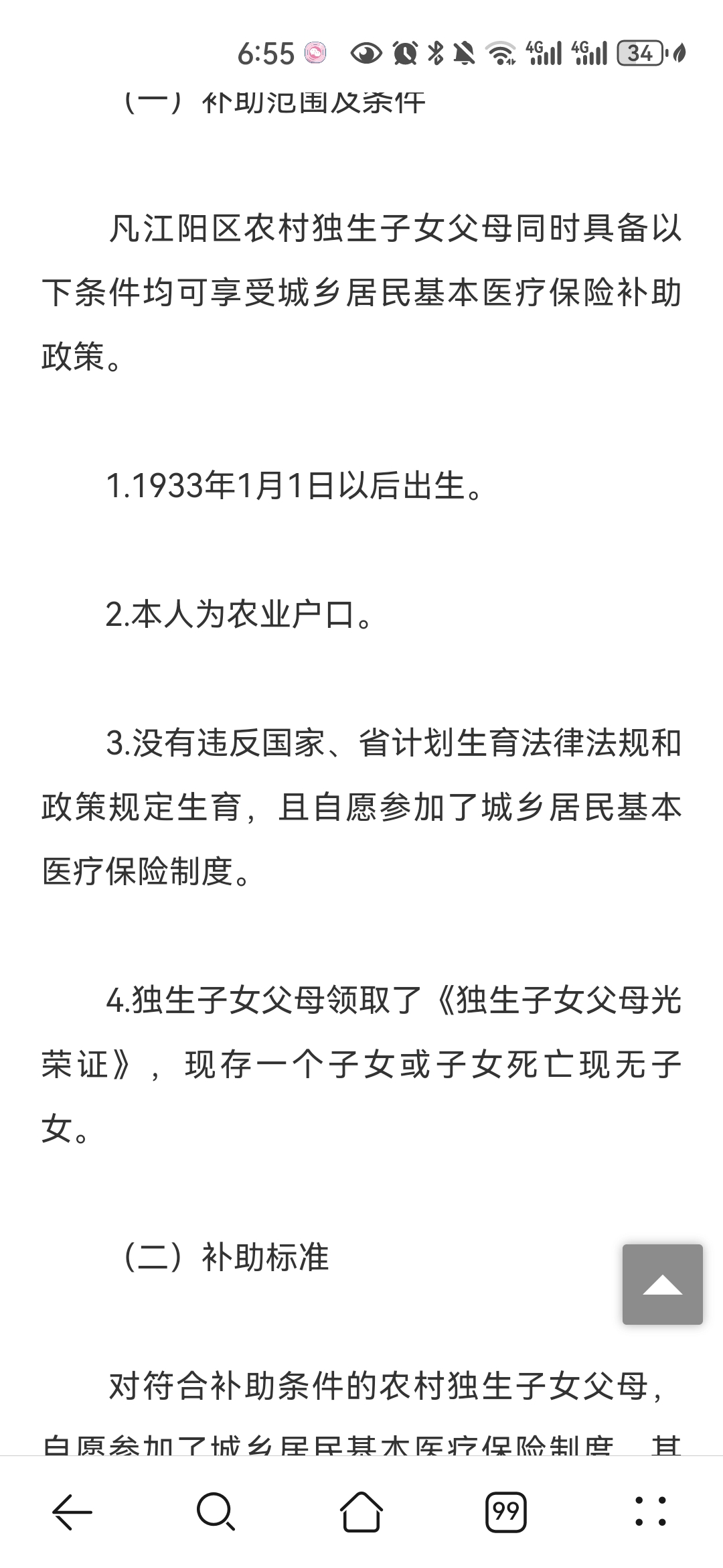 关于独生子女父母城乡居民基本医疗保险相关问题的咨询