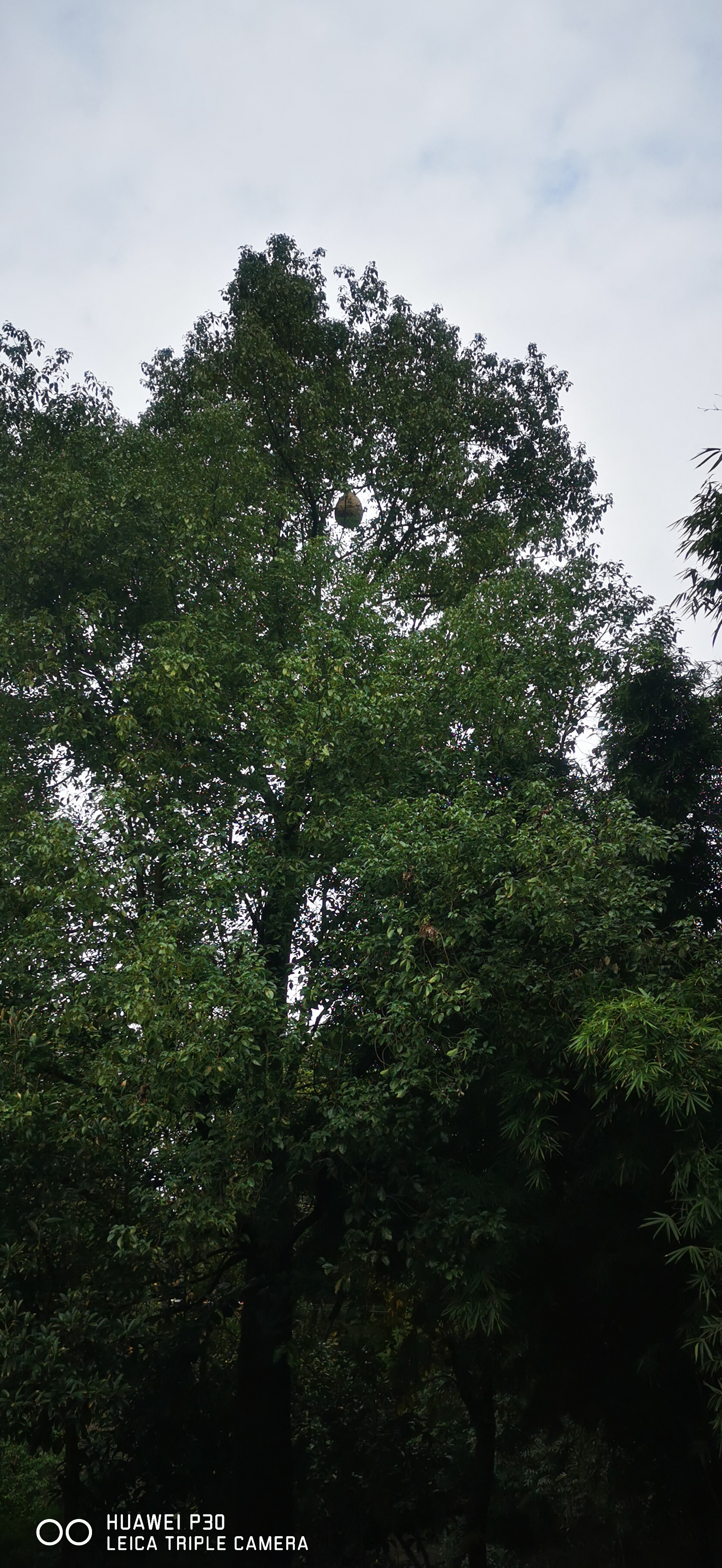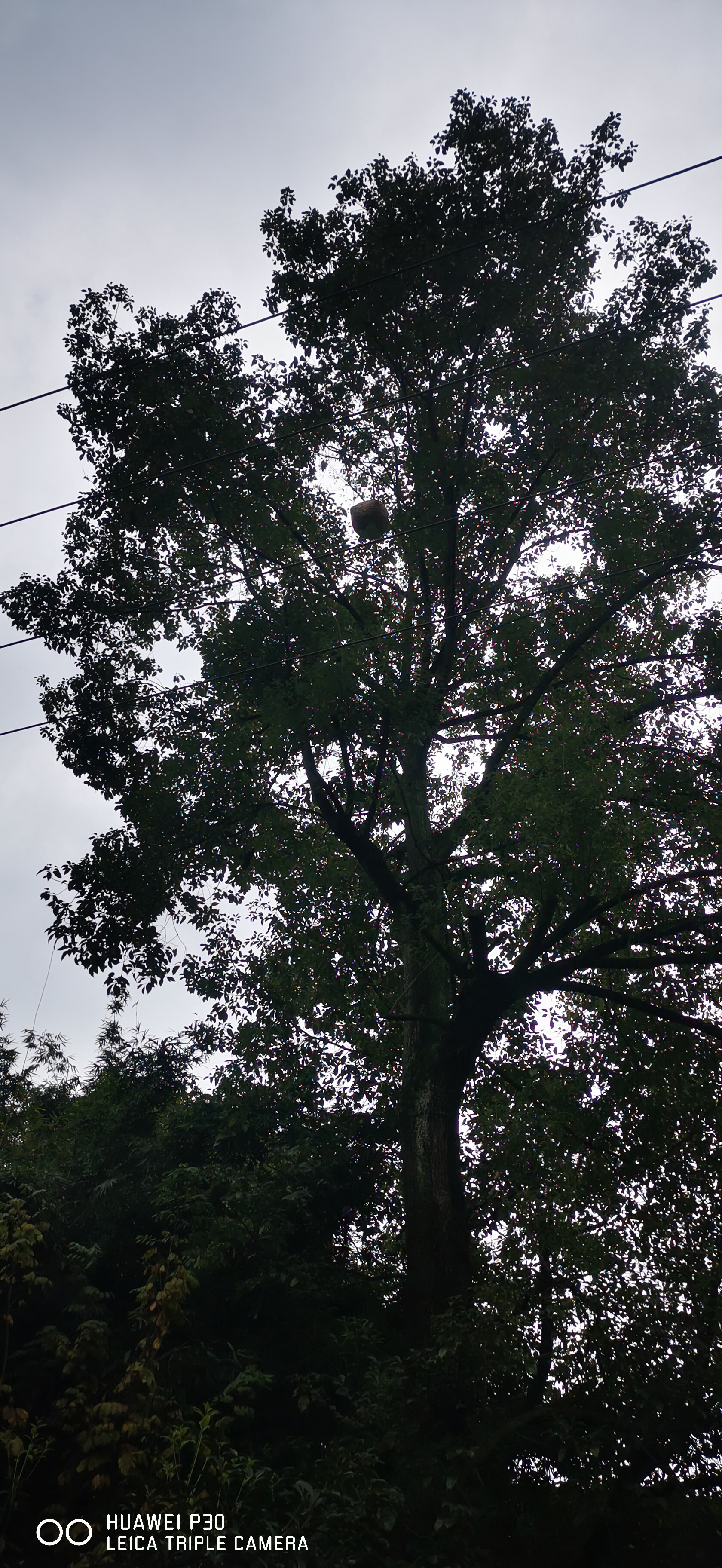 家门口10米高大树上有个直径50CM大的马蜂窝