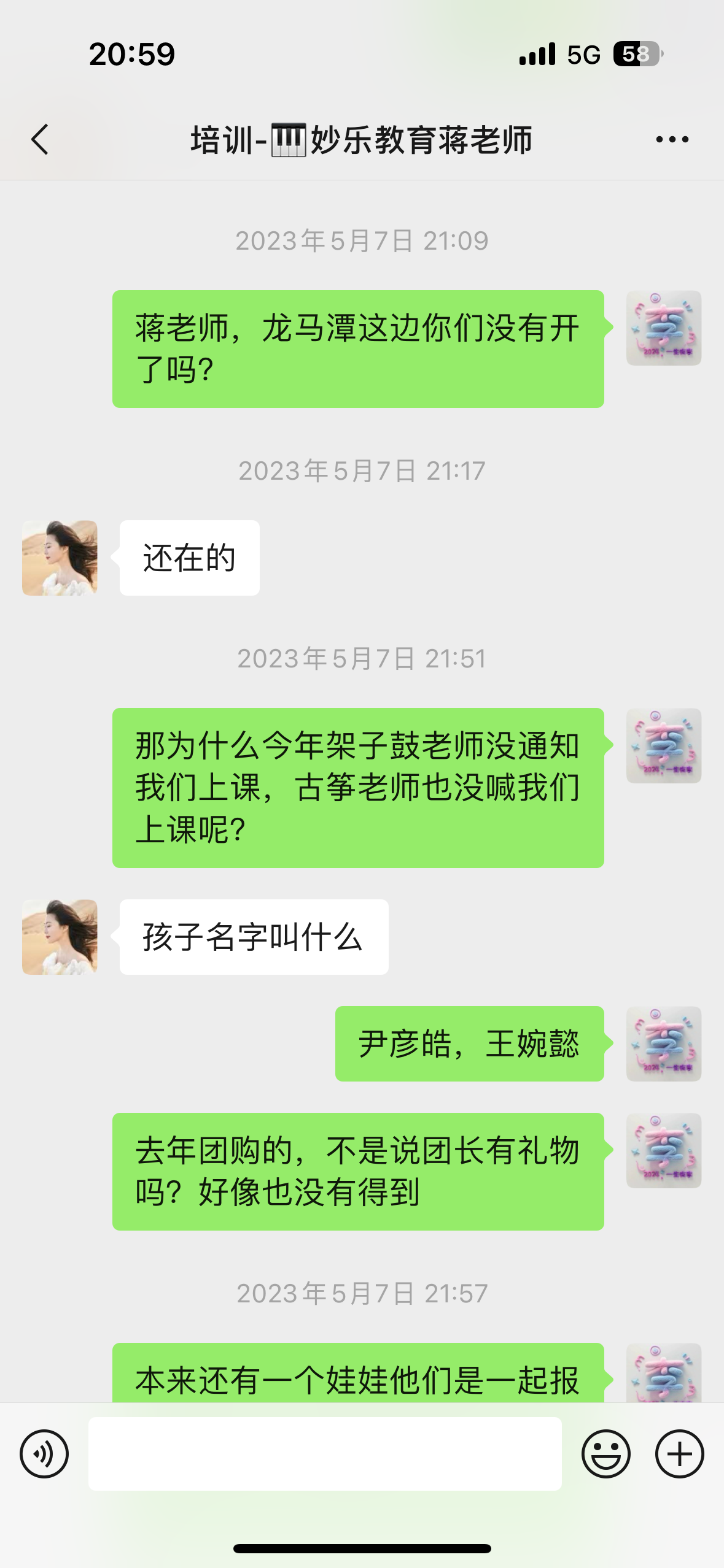 2022年小女在该机构学习古筝,同年该机构搞活动,向其缴纳了两个活动的费用。2022年10月缴纳了20次古筝费用,后因疫情原因,上了两三节课后就未再上课。2023年5月,开始追问上课和费用问题,校长蒋老师均以多种理由搪塞,求助相关部门帮我一起追回学费,感谢!
