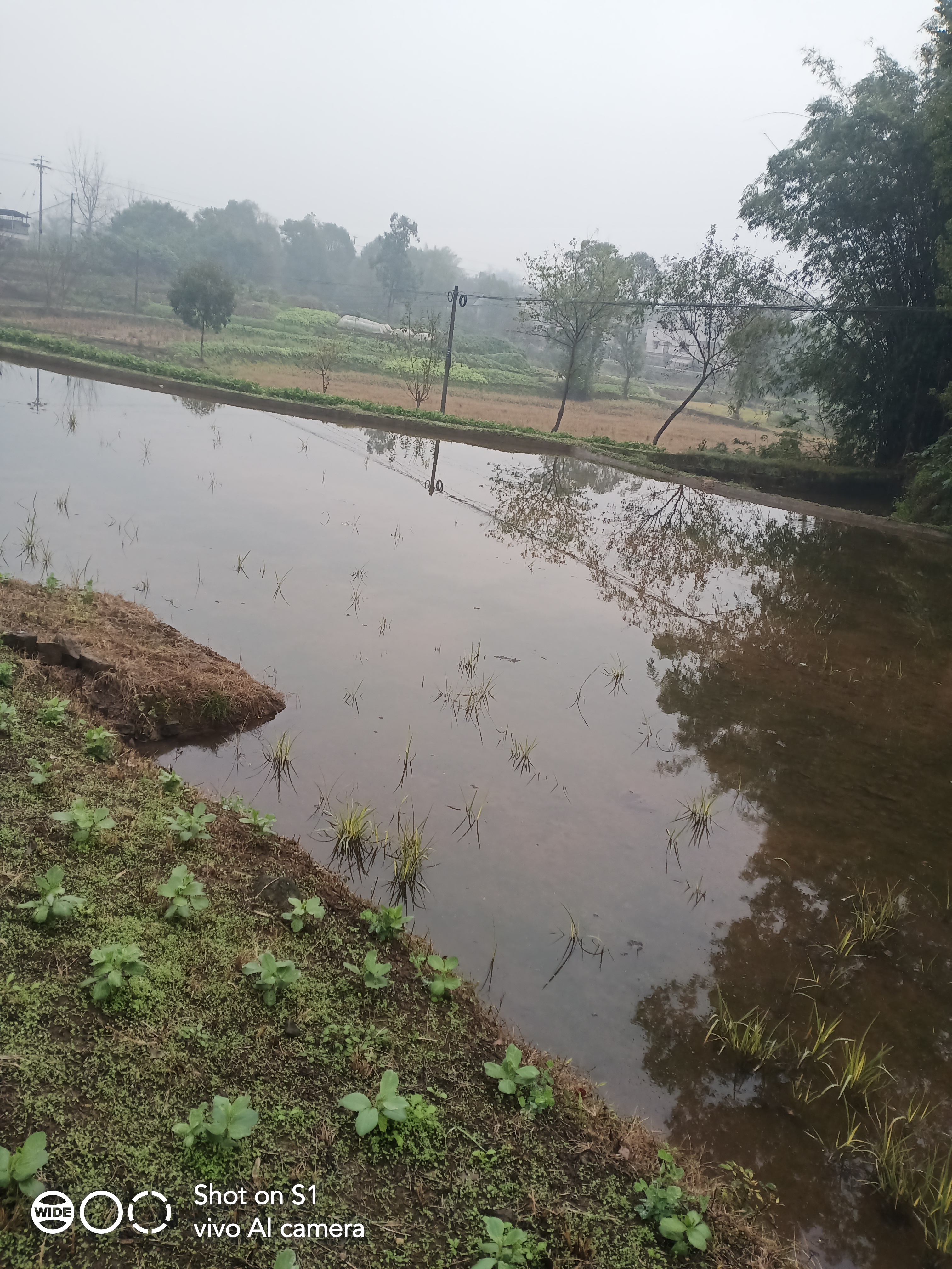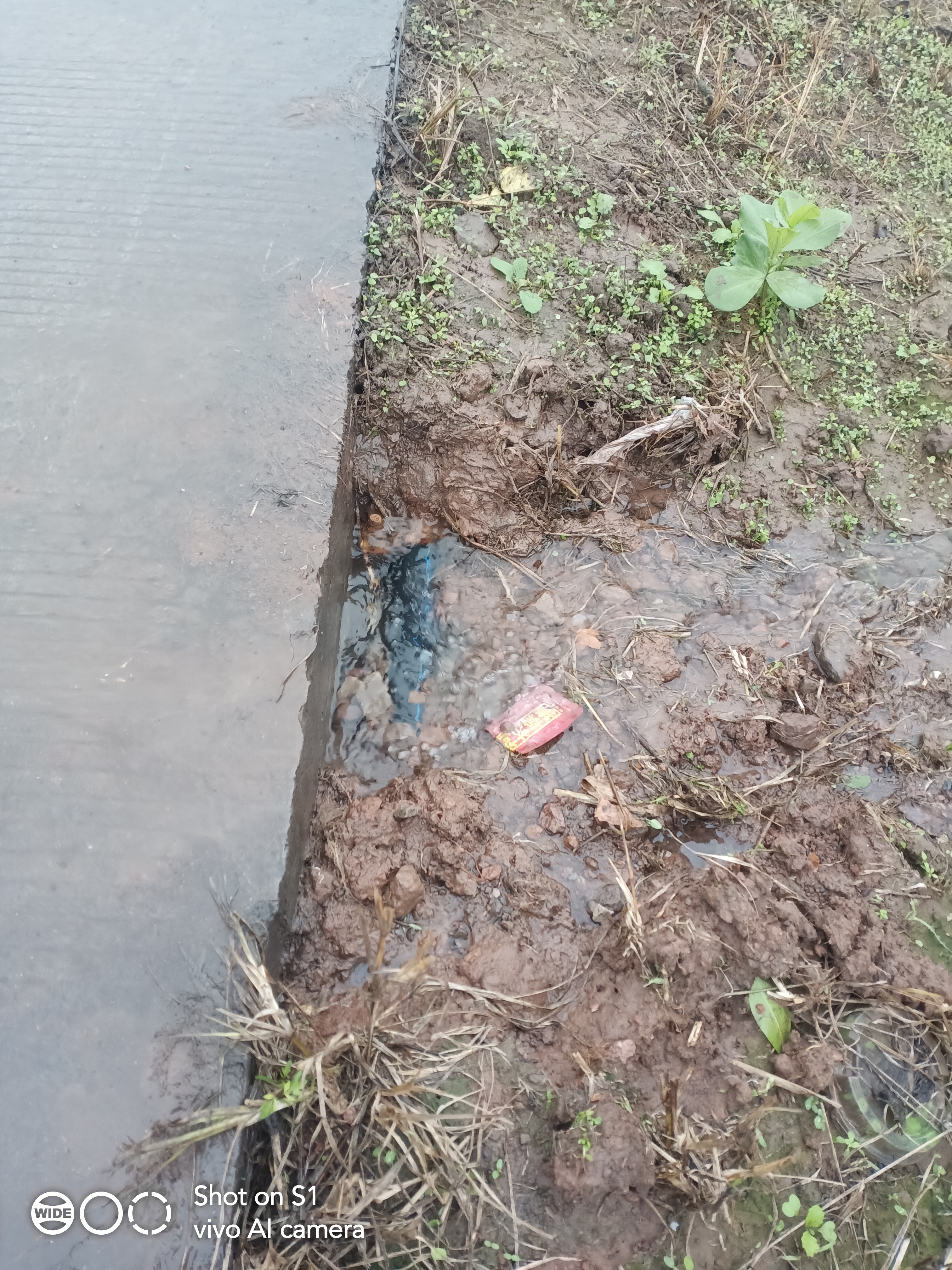 水管漏水多日,无人修,把田都灌满了。