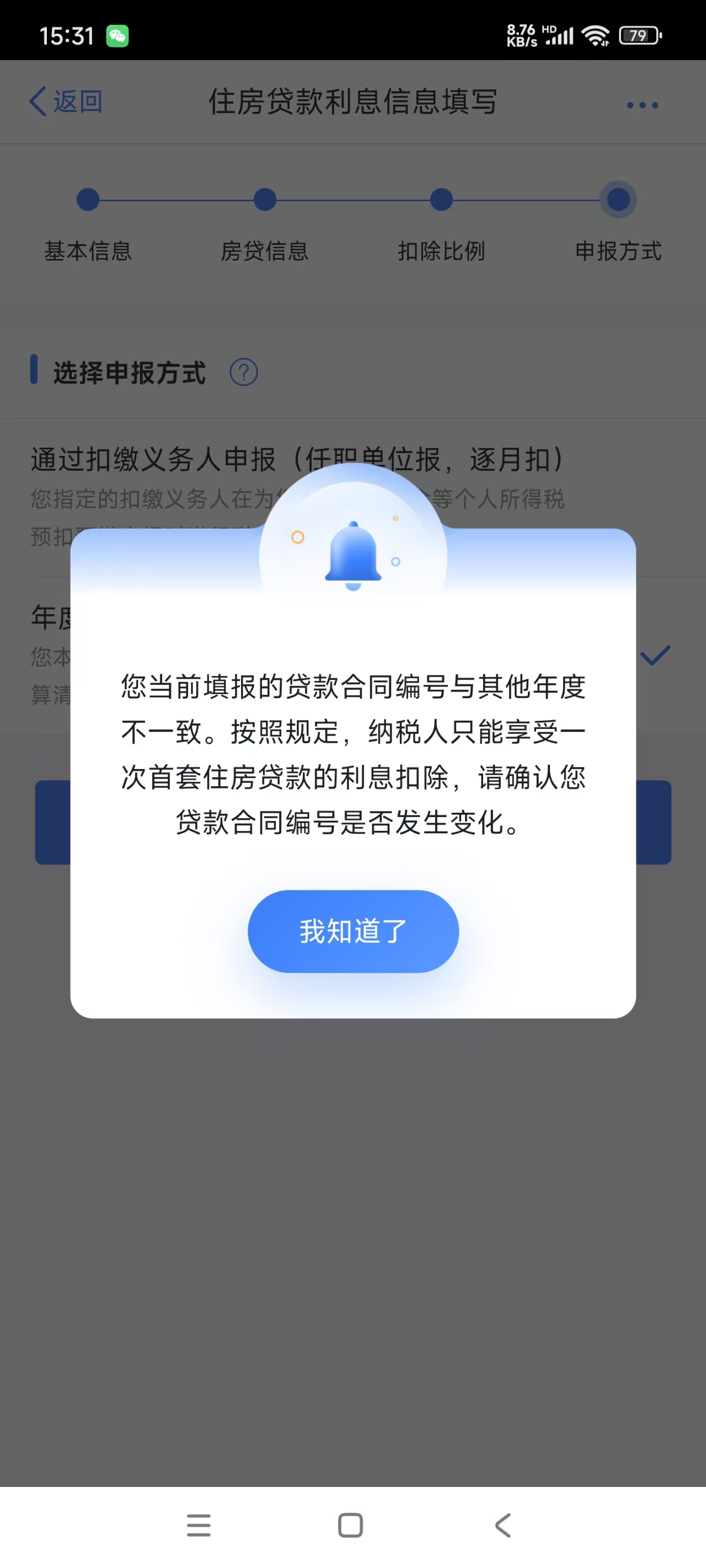 2025年度个人专项附加扣除(住房贷款利息)app填报时按照2024年度原样填报,app提示无法提交,具体见附图。