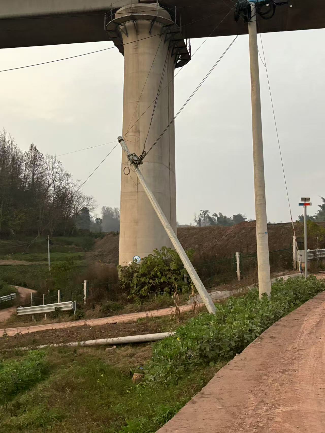 桐子湾村朝熊沟方向有根通信杆要倒了