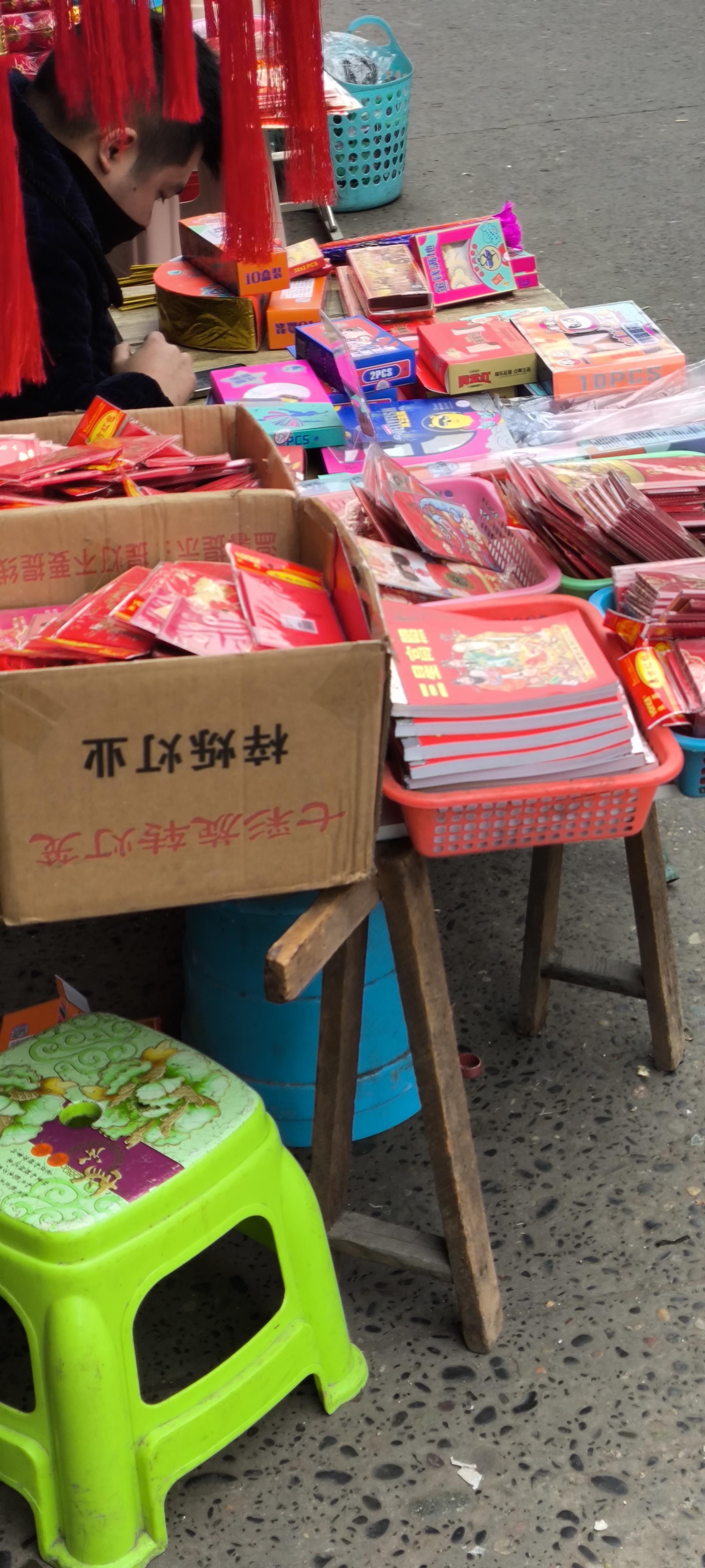 有人在邻玉镇农贸市场内贩卖烟花爆竹