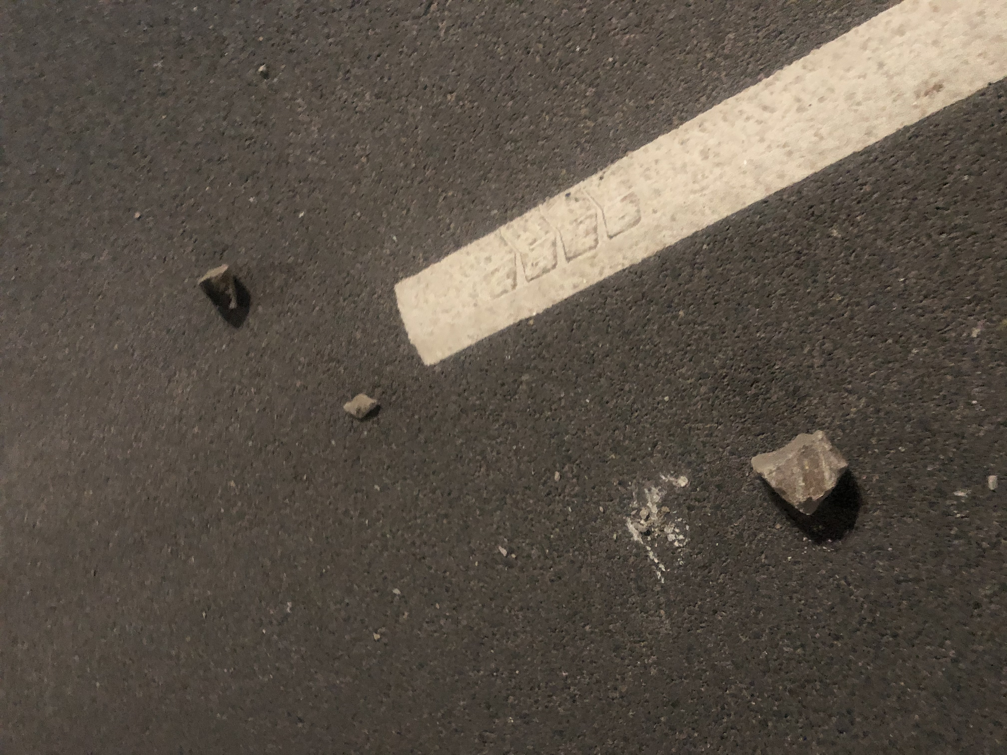 云峰路渣土车掉落石头导致轮胎爆裂 希望有关部门处理一下