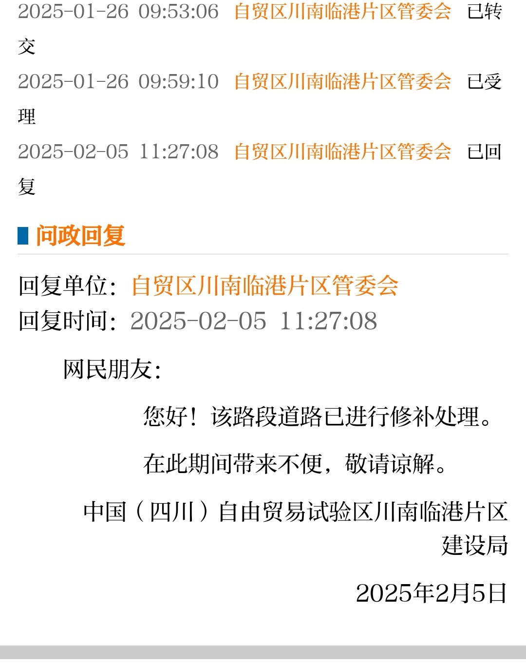 已问政过多次了,你们都说已修补,实际到现在了还没修补。和以前完全一样烂,甚至更烂了。