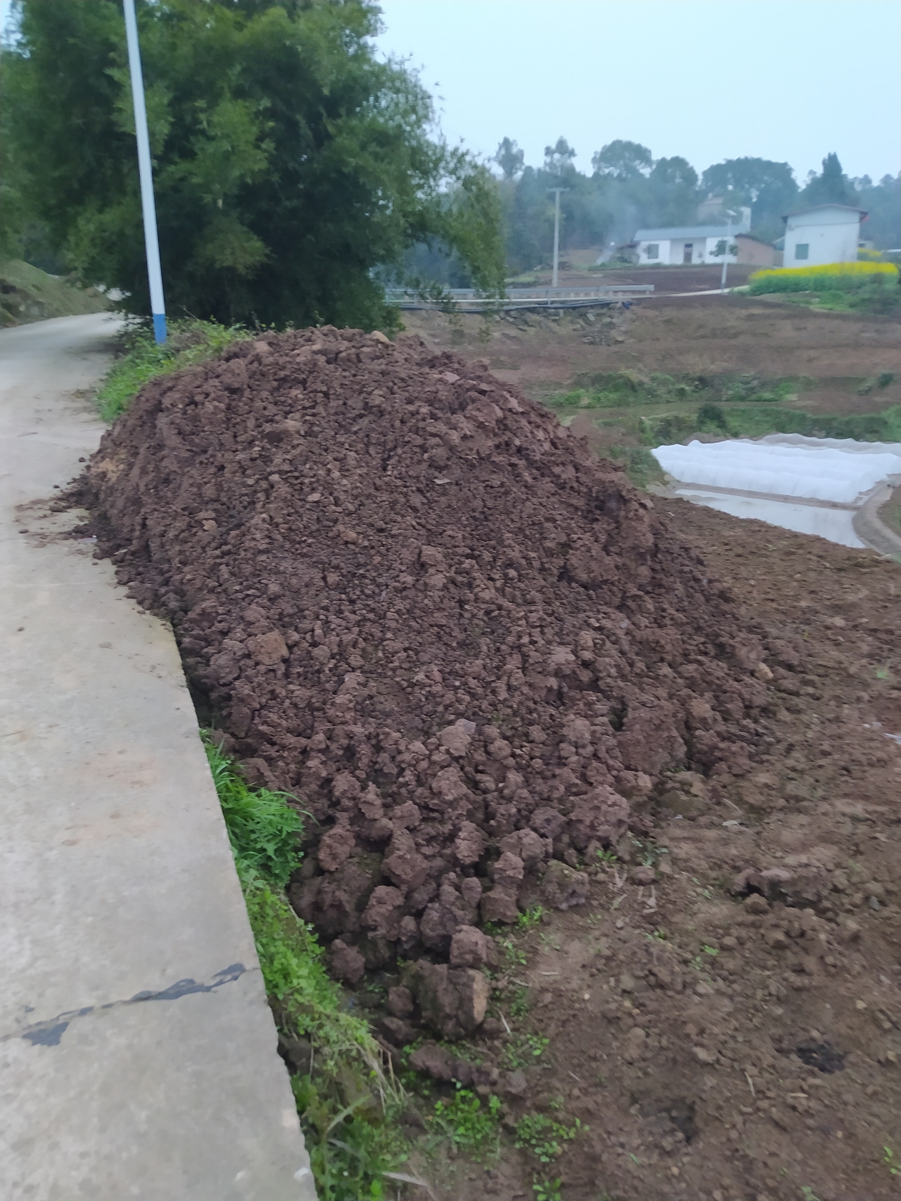 过年期间有从别处运来(据说是某化肥厂的工业废料没有地方处理运来的,这是听说,没有实际证据)的土地,土很臭,我自认为是有毒的
