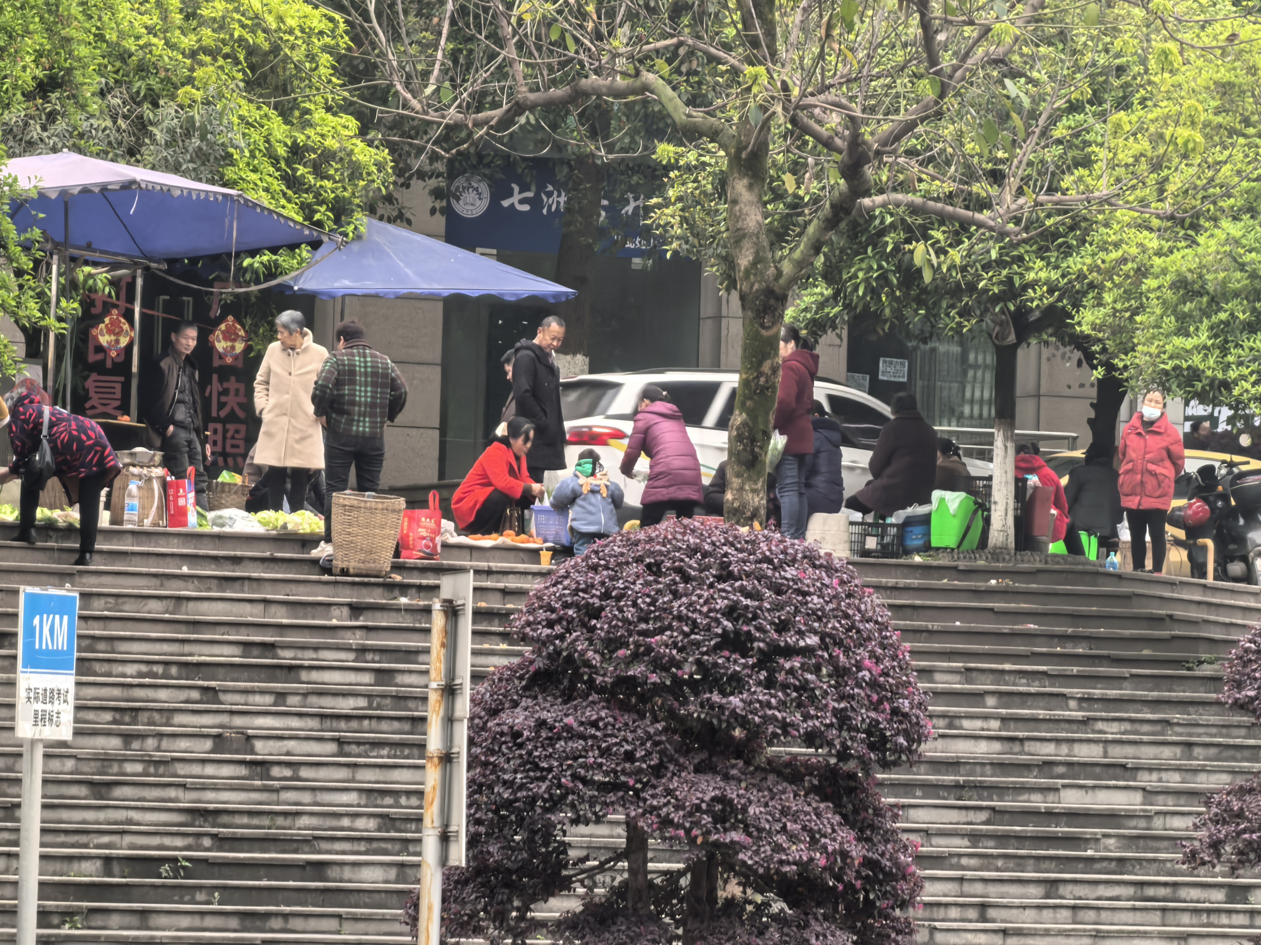 纳溪未来城大门口各种蔬菜小摊贩乱摆,影响环境和行人