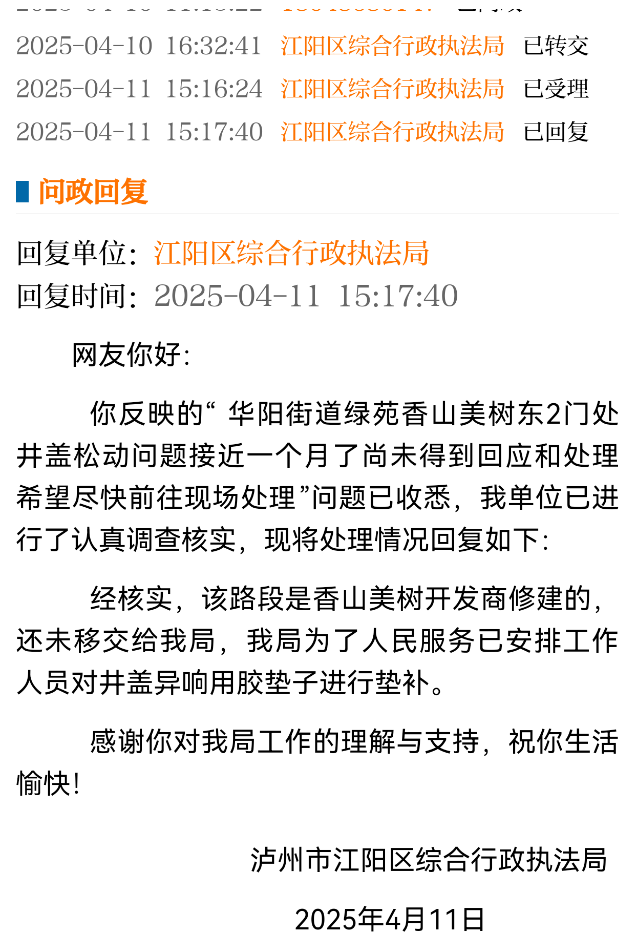 16:57:20 江阳区综合行政执法局 已回复