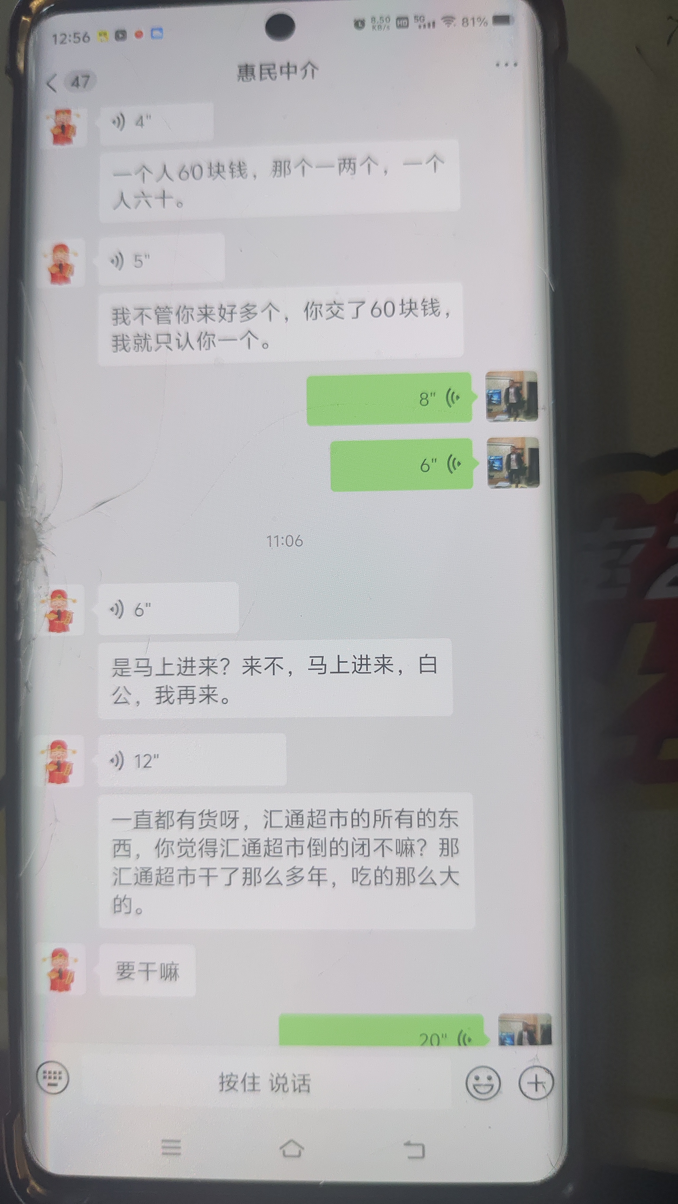 惠民无良中介虚假宣传工作骗我爸120块钱,希望中介退换120元费用,并以后不得发布虚假招聘工作内容
